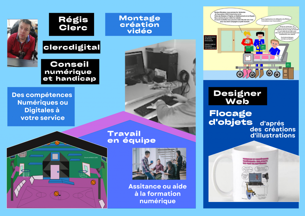 En plus de mes compétences comme le montre vidéo, mon parcours personnel de personne en situation de handicap peut-être également un atout pour collaborer ou travailler pour une structure ou une entreprise, une association. Mes connaissances ainsi que mes diverses expériences me permettent aussi d’apporter mon aide dans divers domaines tels que l’aide à la formation au numérique, l’aide aux associations et aux petites entreprises comme à la recherche de partenariats d’entreprises.